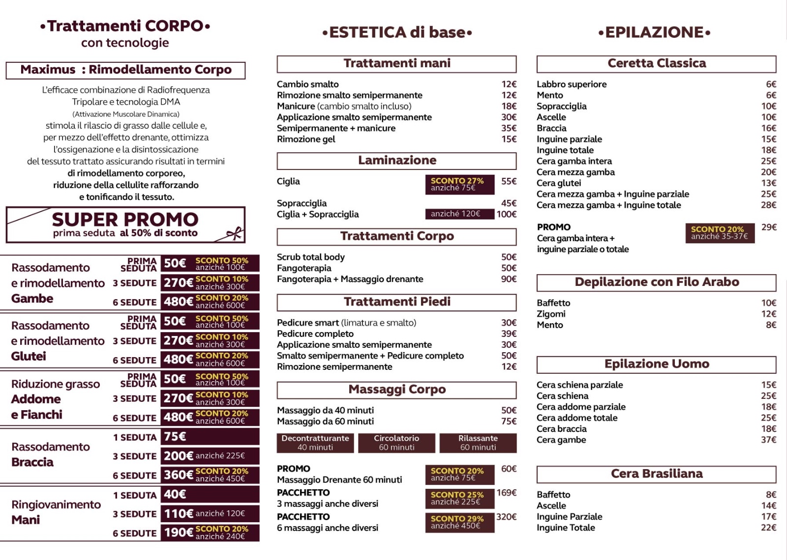 Per maggiori info su prezzi e trattamenti puoi: