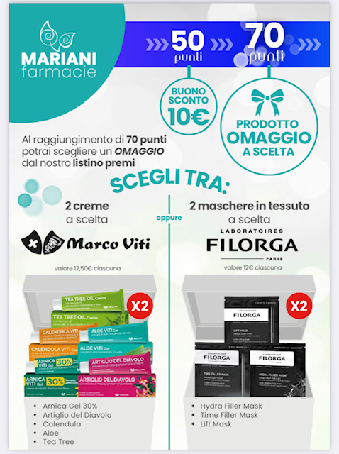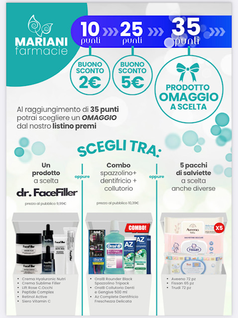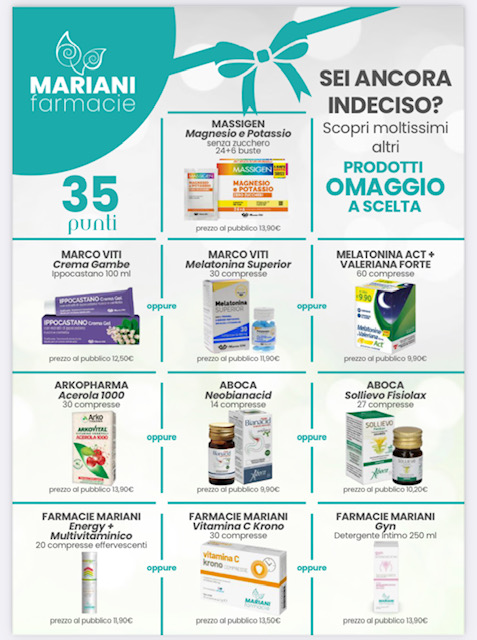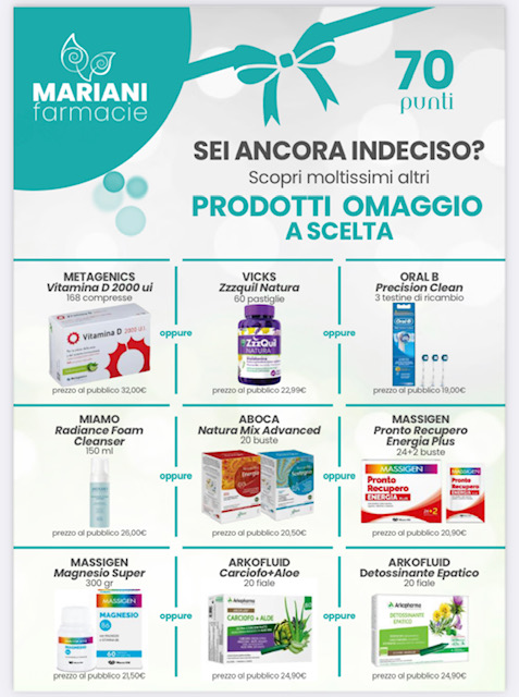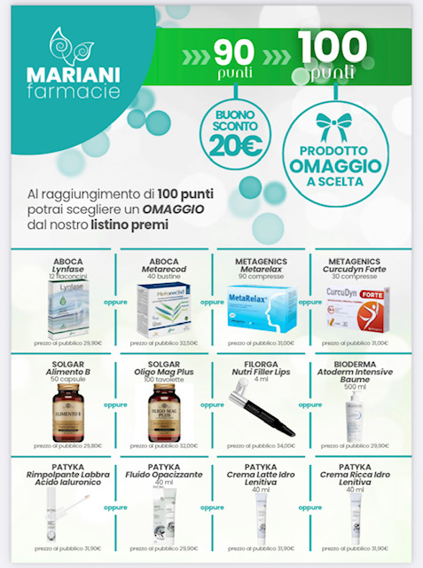 Sfoglia il nostro catalogo premi e buoni sconto, riservato per i possessori di Carta Fedeltà delle Farmacie Mariani.