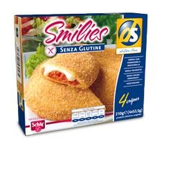 Smilies ds Crêpes ripiene di mozzarella e pomodoro. Senza glutine e senza aggiunta di soia.Ingredienti Ripieno al pomodoro e mozzarella 48% [polpa di pomodoro 35%, siero di latte reidratato, mozzarella 20%, amido di mais, margarina (grasso di palma, acqua, olio di colza, emulsionante: esteri citrici di mono e digli...
