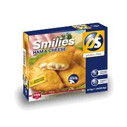 ds Smilies HAM & CHEESECaratteristiche Crêpes con ripieno di prosciutto, formaggio e mozzarella senza glutine, senza esaltatori di sapidità, senza coloranti, senza grassi idrogenati e senza aggiunta di soia.Preparazione Lasciare scongelare a temperatura ambiente per circa 7 minuti. Padella: friggere 3 minuti per parte i...