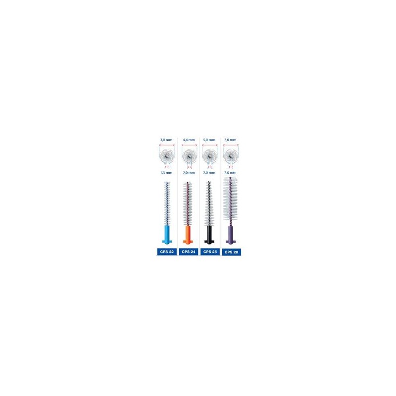 Curaprox Plus CPS Prime Scovolini interdentali ultrasottili e resistenti per eliminare efficacemente la placca dagli spazi interdentali più stretti. Idonei in pazienti sani e in presenza della papilla interdentale.Formato Blister da 5 scovolini con 1 manico.Cod. CPS06P / CPS07P / CPS08P / CPS09P / CPS011P